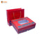 A premium rigid folding gift box in rich royal blue, featuring intricate gold and orange peacock and floral motifs on the lid. Designed with a unique dual-side magnetic closure, it opens wide for easy access and folds flat for compact storage when not in use. Perfect for festive gifting, hampers, dry fruits, sweets, and luxury presents. Durable construction ensures your gifts stay secure and look stunning.